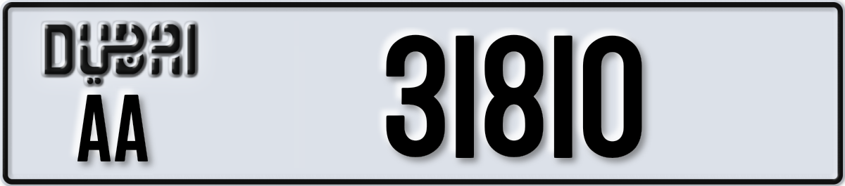 لوحة دبي رقم AA 31810 معروضة على PL8. الحالة: متاح.