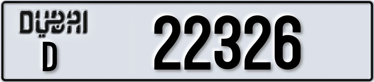 لوحة دبي رقم D 22326 معروضة على PL8. الحالة: متاح.