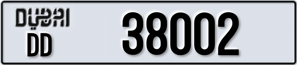 لوحة دبي رقم DD 38002 معروضة على PL8. الحالة: متاح.