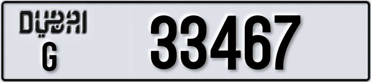 لوحة دبي رقم G 33467 معروضة على PL8. الحالة: متاح.