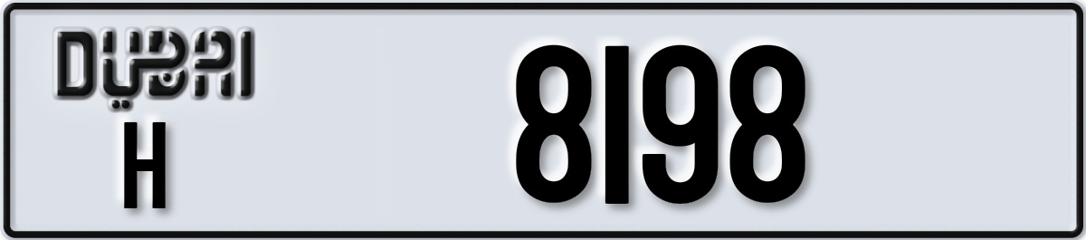 لوحة دبي رقم H 8198 معروضة على PL8. الحالة: متاح.