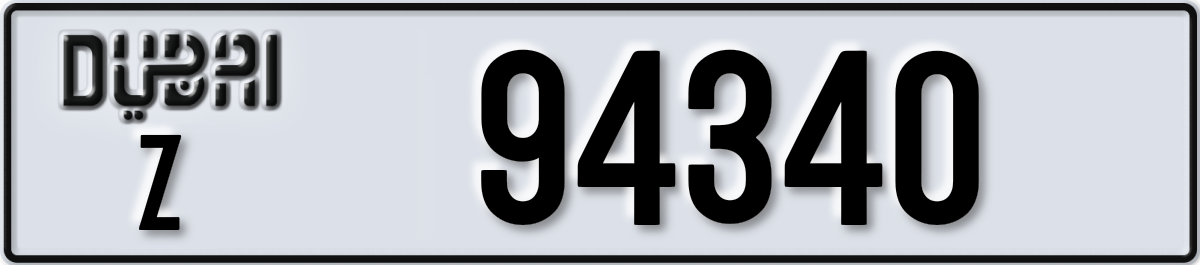 لوحة دبي رقم Z 94340 معروضة على PL8. الحالة: متاح.