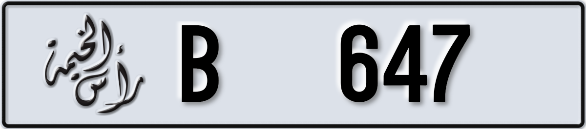 لوحة رأس الخيمة رقم B 647 معروضة على PL8. الحالة: متاح.
