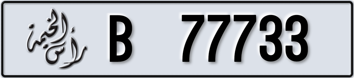 لوحة رأس الخيمة رقم B 77733 معروضة على PL8. الحالة: متاح.