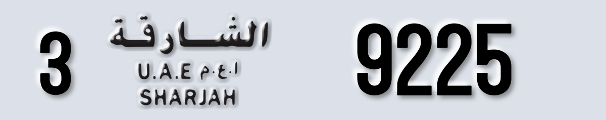 لوحة الشارقة رقم 3 9225 معروضة على PL8. الحالة: متاح.