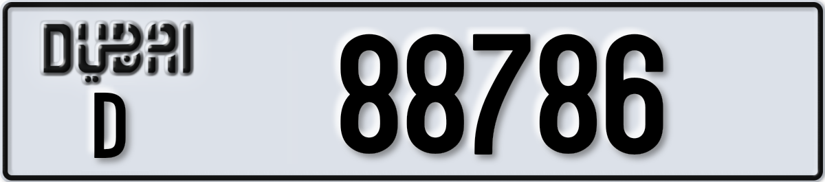 Dubai plate number D 88786 listed on PL8. Status: available.