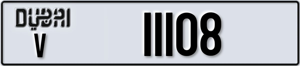 Dubai plate number V 11108 listed on PL8. Status: available.
