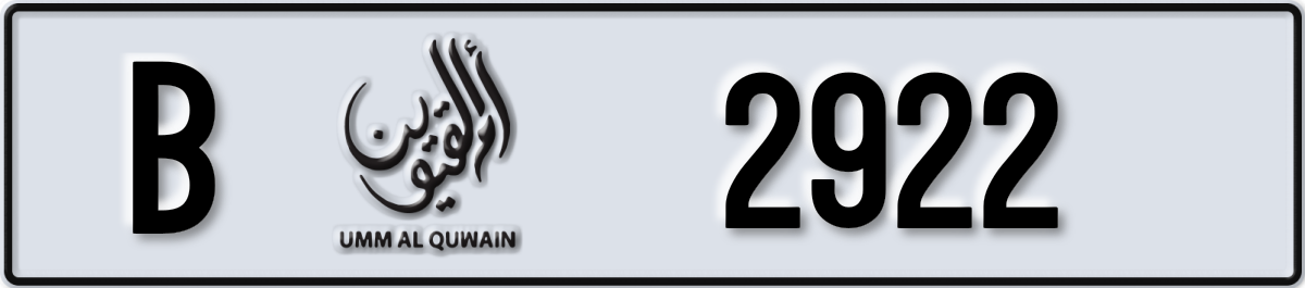 Umm Al-Quwain plate number B 2922 listed on PL8. Status: available.