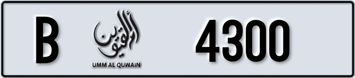 Umm Al-Quwain plate number B 4300 listed on PL8. Status: available.