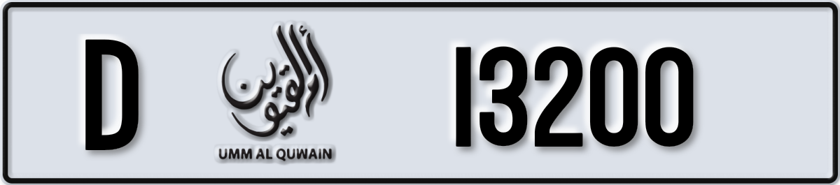 Umm Al-Quwain plate number D 13200 listed on PL8. Status: available.