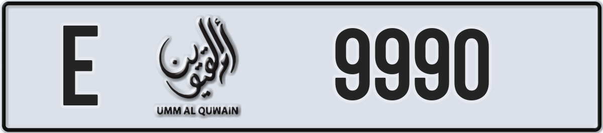 Umm Al-Quwain plate number E 9990 listed on PL8. Status: sold.