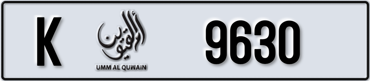 Umm Al-Quwain plate number K 9630 listed on PL8. Status: available.
