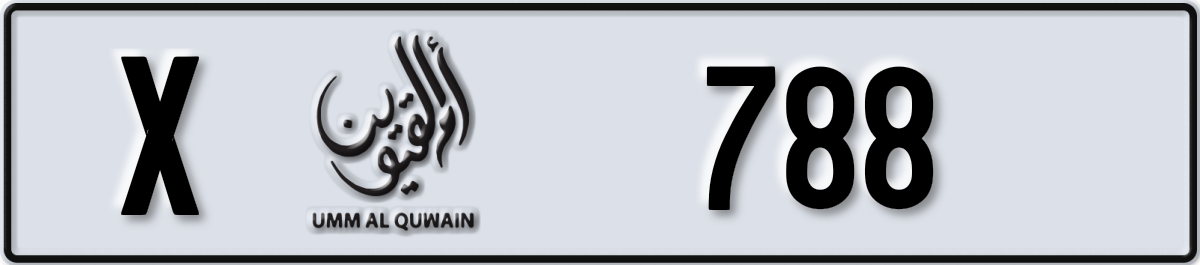 Umm Al-Quwain plate number X 788 listed on PL8. Status: sold.